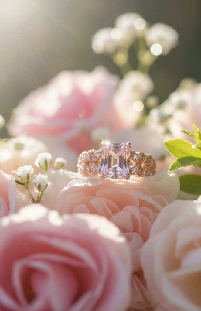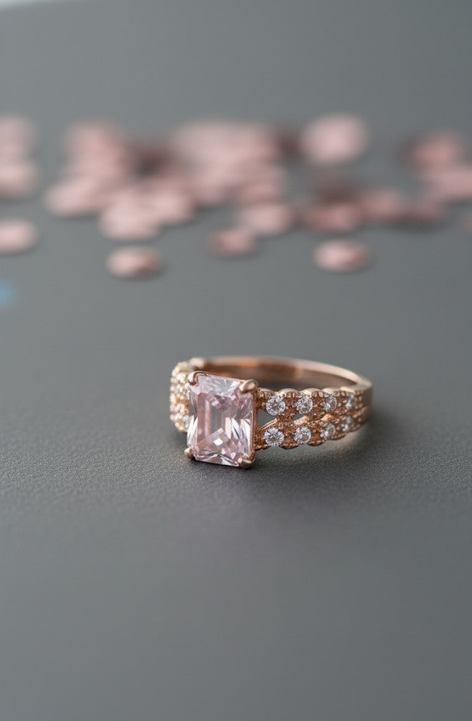 This exquisite ring features a radiant-cut pink diamond as its centerpiece, set in a luxurious rose gold band. The band is adorned with multiple rows of brilliant round diamonds, adding unmatched sparkle and sophistication. Perfect for engagements, anniversaries, or luxury gifting, this ring symbolizes romance, elegance, and timeless beauty, making it an unforgettable statement piece.