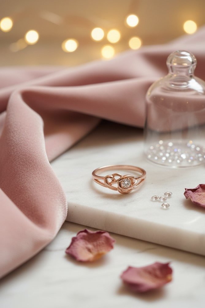 A romantic infinity-heart diamond ring in rose gold, symbolizing eternal love and timeless elegance.