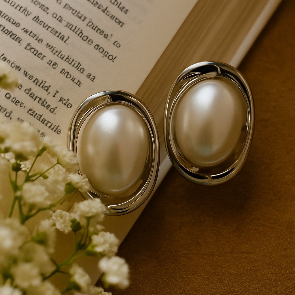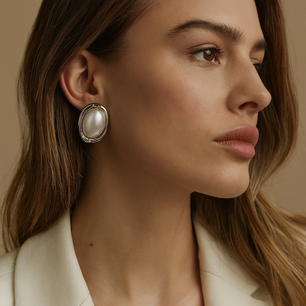 These elegant Oval Pearl Stud Earrings feature a timeless design with a lustrous white pearl centerpiece encased in a sleek, silver-tone frame. The modern oval silhouette with gentle metallic curves enhances the shine of the pearl, making these earrings both classic and contemporary. Perfect for elevating everyday outfits or complementing formal attire, they offer a versatile elegance that never goes out of style.